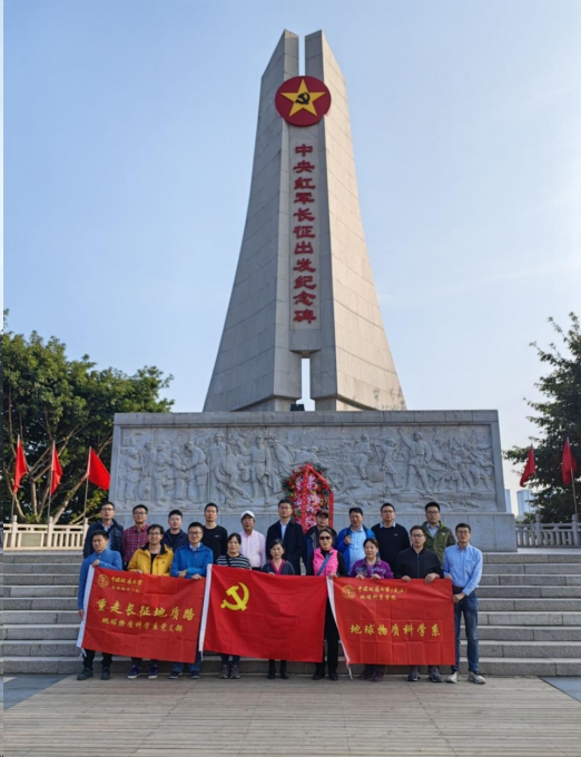 1934年10月,中央红军约8.6万人集结于江西省于都县,开始了伟大的二万五千里长征。在风雨如磐的长征路上,红军战士翻越18座大山,跨越24条大河,历经14个省份,最终会师于甘肃会宁地区。为了进一步弘扬长征精神,传承地质报国情怀,地龙珠直播 地球物质科学系教师从中央红军长征集结出发地——江西于都开启了“重走长征地质路”系列党建活动。