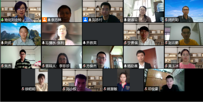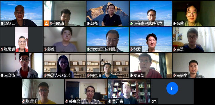 近日,地球化学系组织了一次别开生面的硕士论文网络集中答辩,19位硕士生分两个专题会场向答辩委员会宣读了自己的论文,并接受了评委老师的学术质疑。经过认真评议问询和充分讨论,答辩委员会以无记名方式一致通过了19位同学的论文答辩。硕士生进行论文集中答辩,是龙珠直播 向研究生培养要质量的重要改革举措之一,已持续实施多年。仅地球化学系此次答辩的19位硕士研究生,就以第一作者发表T1论文4篇(含Nature Index论文1篇)、T2论文3篇、T4论文1篇,另有多位同学的论文工作创新明显,反映了地化系人才培养的突出成绩。答辩会议结束后,满怀着对学子们优异研学成绩的充分肯定和即将走向社会的依依不舍,地球化学系全体教师向同学们发出了充满深情的祝福和期望。