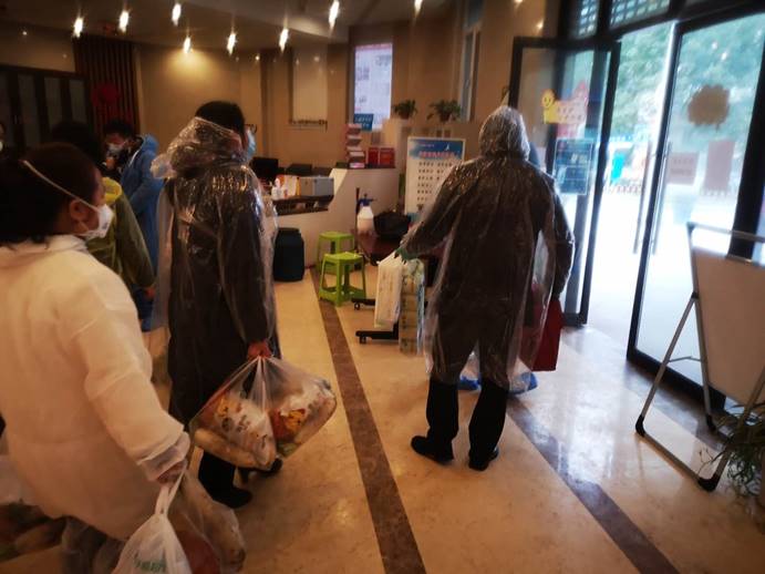 王珩与志愿者们按照登记的地址一家一家地配送物资,为了避免入户给居民带来惶恐与不安,也为了减少感染可能性,他们都会按约定好的方法,将物资放在居民家门外,等到离开后再给居民打电话提醒取回。