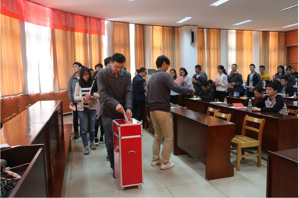 本次会议由地龙珠直播 党委书记王甫主持。大会第一项,王甫向参会人员报告了到会情况,满足开会人数要求,全体起立,齐唱国歌。第二项,王甫向各位参会党员介绍了学校十二次党代会代表选举的相关要求,以及地龙珠直播 各支部推选出的十二位党代表候选人预备人选的基本情况。随后各位进行了庄严的投票仪式,各位党员根据自己的选择投下神圣的一票。现场计票后,地龙珠直播 选出了赖旭龙、王甫、刘勇胜等十位同志作为正式代表参加学校的第十二次党代会。