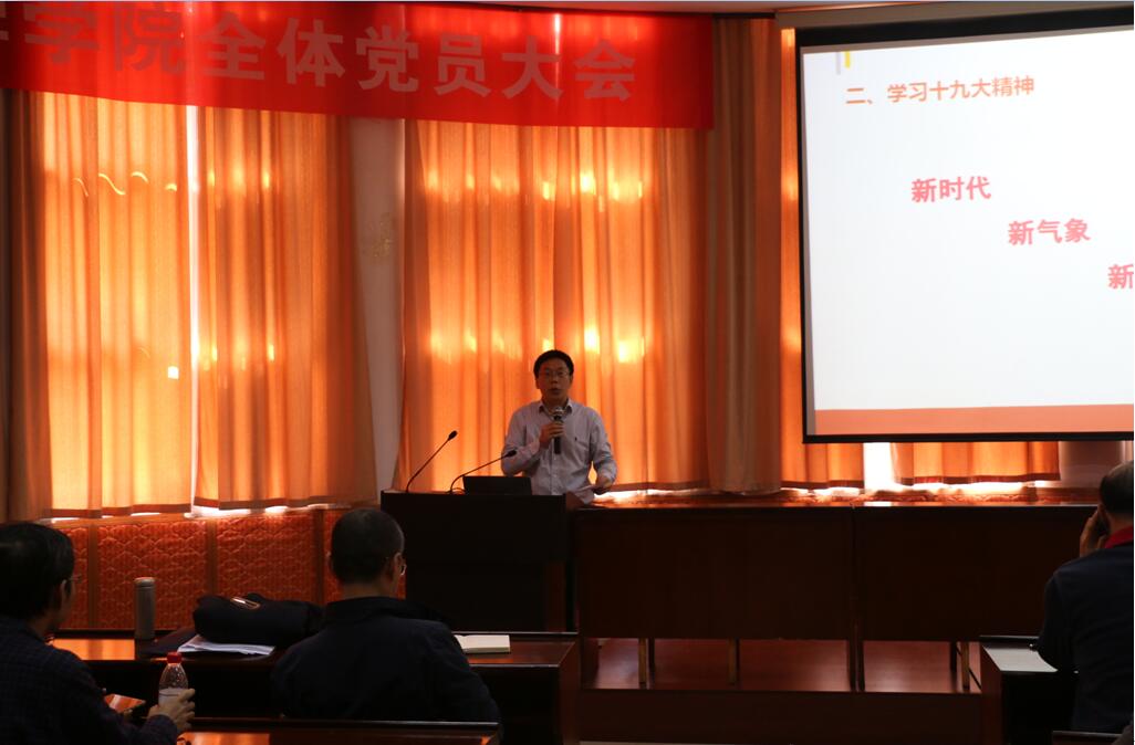 选举活动结束后,王甫书记为全体参会党员上党课,集中学习党的十九大会议精神。他首先传达了10月26日,教育部召开的教育系统学习贯彻十九大精神视频会议的相关精神,传达了学校党委书记何光彩同志对学校如何学习贯彻落实提出的具体要求。按照党中央部署和教育部统一安排,教育系统要把学习宣传贯彻党的十九大精神作为当前和今后一个时期的首要政治任务。王甫要求各位党员同志要“学起来、教起来、传起来、研起来、干起来、实起来”,迎接新时代,焕发新气象,创造新作为,将十九大精神落实到“教书育人、立德树人”的工作实践中去,希望龙珠直播 全体党员教师加强师德师风建设,提高党性修养,做教书育人、立德树人的楷模,做严肃科研经费管理,关爱学生成长的楷模。希望各位学生党员做坚定理想信念、立志成长成才的模范,做艰苦奋斗、勇于创新的模范。