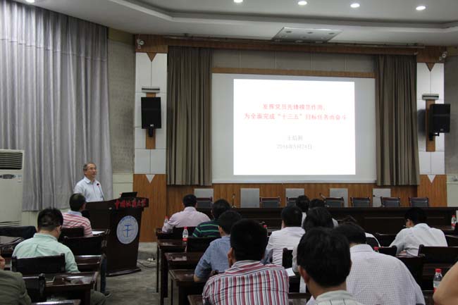 5月24日晚,“两学一做”专题党课在八角楼举行,王焰新校长为地龙珠直播 和审计处教工党员作“发挥党员先锋模范作用,为全面完成“十三五”目标任务而奋斗”的专题辅导报告。他从《习近平谈治国理政》和习近平总书记系列重要讲话的学习体会谈起,对“十三五”时期经济社会发展的指导思想、主要目标进行了深入的解读,提出发挥党员先锋模范作用的八字要诀“肯干、格局、精致、勤学”,他希望广大党员要敢于吃苦,勇于担当、见微知著,未雨绸缪,注重细节和过程,勤于学习,保持对知识、真理的敬畏之心。他要求以绿色和共享发展为契机,抓住东部、中部、西部和东北四大板块和一带一路、长江经济带建设和京津冀协同发展三大战略融合的战略机遇,积极寻找学科发展的突破点,发挥专业优势,真正使地质行业走出国门,放眼全球培养有世界眼光的地质学家。