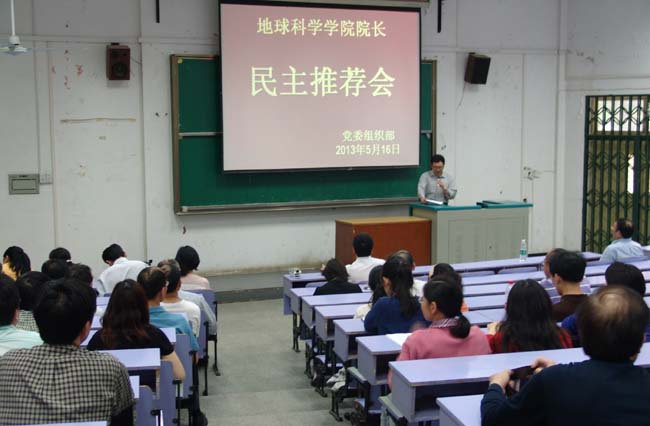2013年5月16日下午地龙珠直播 举行新一任院长民主推荐会,大会由学校党委组织部部长刘亚东教授主持,地龙珠直播 近80名教职工参加。