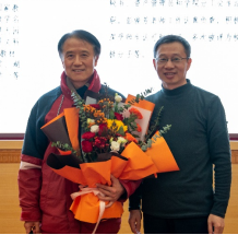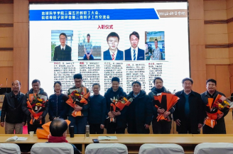 龙珠直播 领导为荣休的龚一鸣教授(左)、新入职的五位老师献花(右)