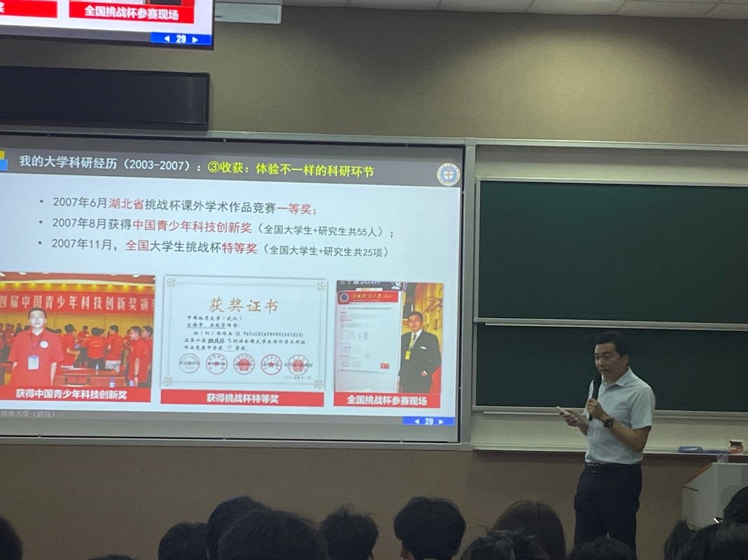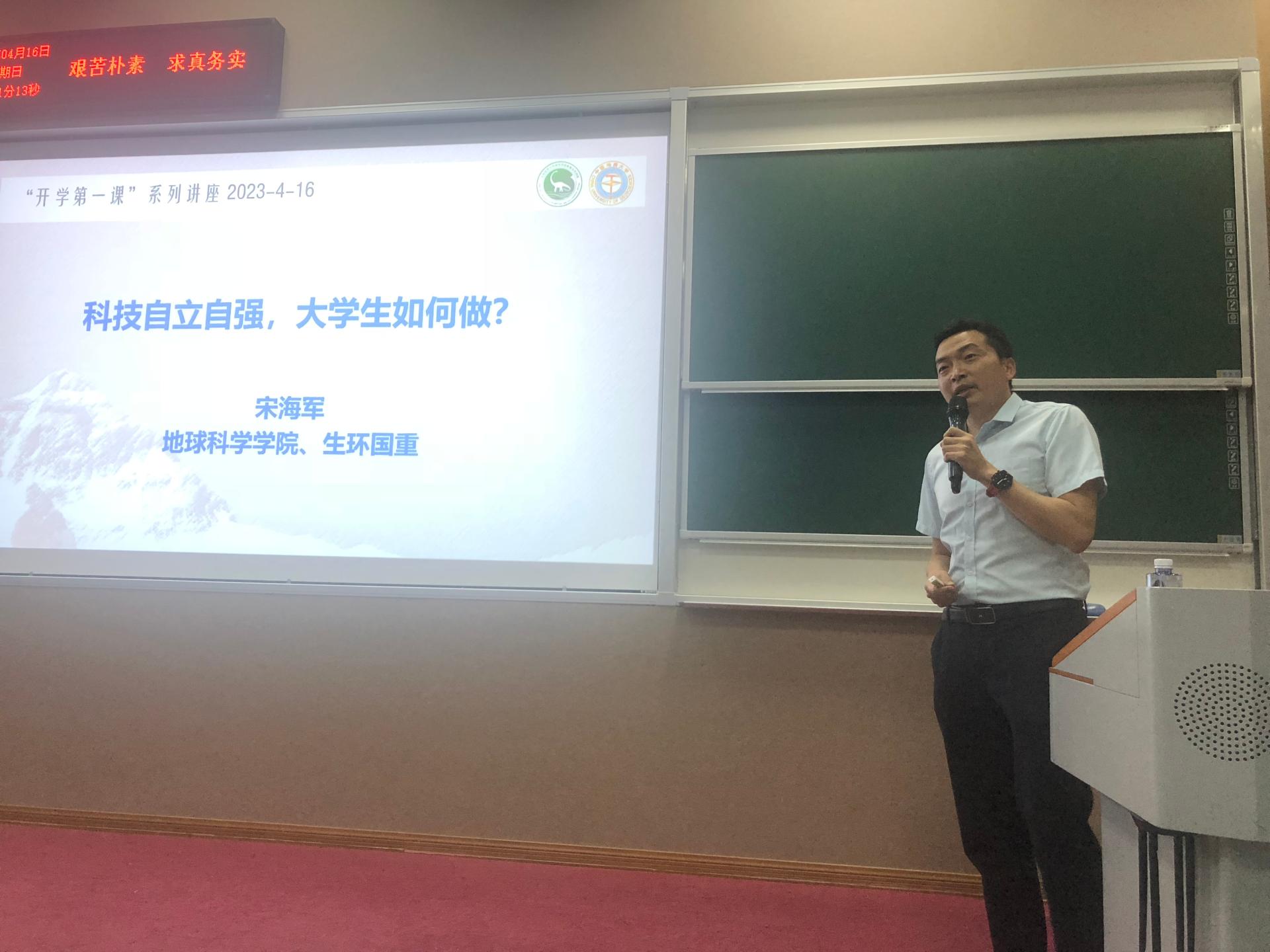 4月16日晚,第十七届“中国青年科技奖特别奖”获得者、龙珠直播 地球生物学系教授、生物地质与环境地质国家重点实验室副主任,“挑战杯”大学生课外学术科技竞赛优秀指导老师宋海军教授以“科技自立自强,大学生该如何做”为题,为龙珠直播 2022级本科生带来了一场精彩的主题报告。