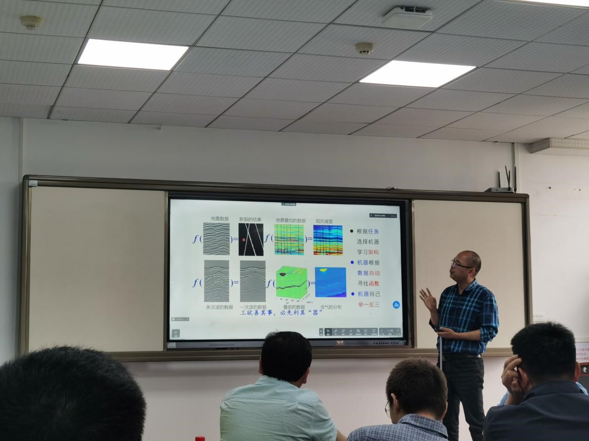 易鸣教授主要研究方向为统计机器学习、数据挖掘与生命科学和地球科学交叉,他为龙珠直播 师生做了“基于CNN和贝叶斯分类的地震散射波场反演成像方法”的报告,介绍了地震波传播的建模和用机器学习方法识别地震波的方法,以及地球物理方法在油气勘探和溶洞识别上的应用。