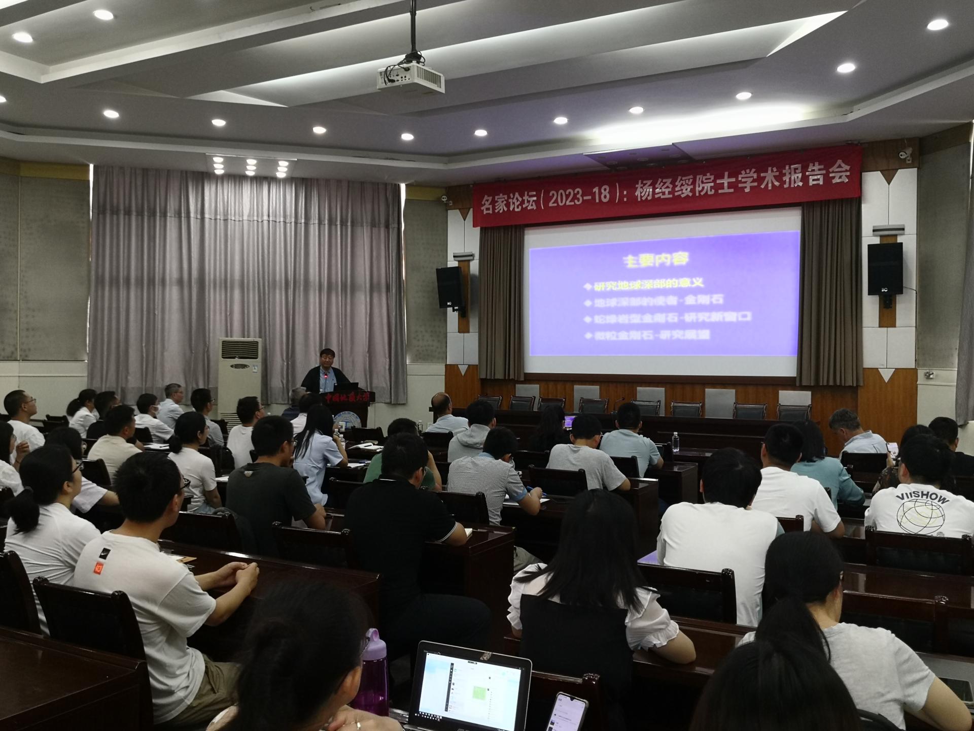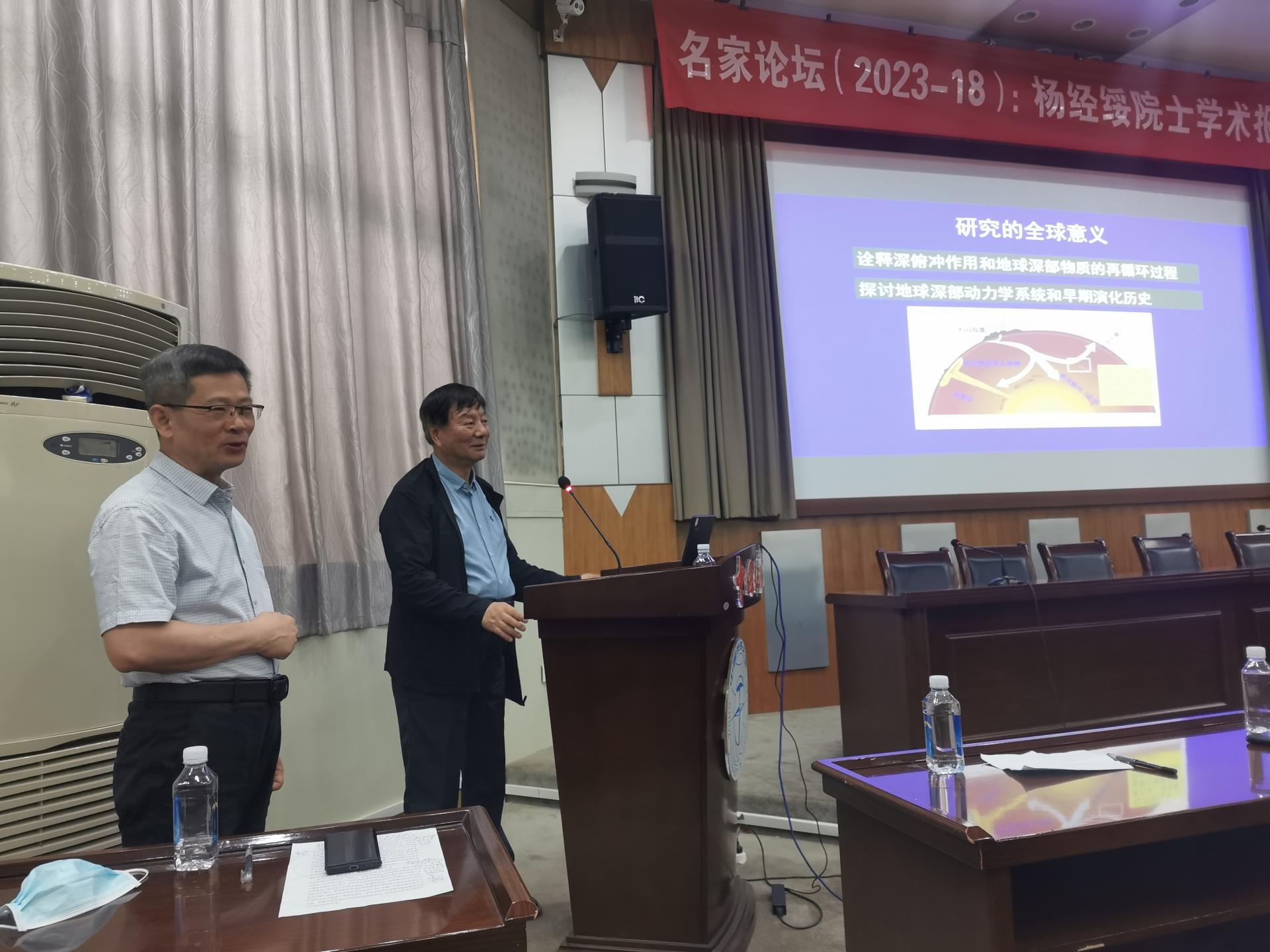 报告结束后,与会人员围绕蛇绿岩中原位金刚石研究的关键科学问题、研究思路和方法等内容踊跃提问,杨经绥院士耐心细致地回答了师生们的提问,并分享了蛇绿岩中原位微粒金刚石从发现到获得国际同行认可二十年的心路历程。杨经绥院士以其坚韧不拔在蛇绿岩矿物中发现原位微粒金刚石的经历,说明在探索未知、研究真理的道路上,要有执着的追求,科学的梦想,才能不断攀登科学的高峰。