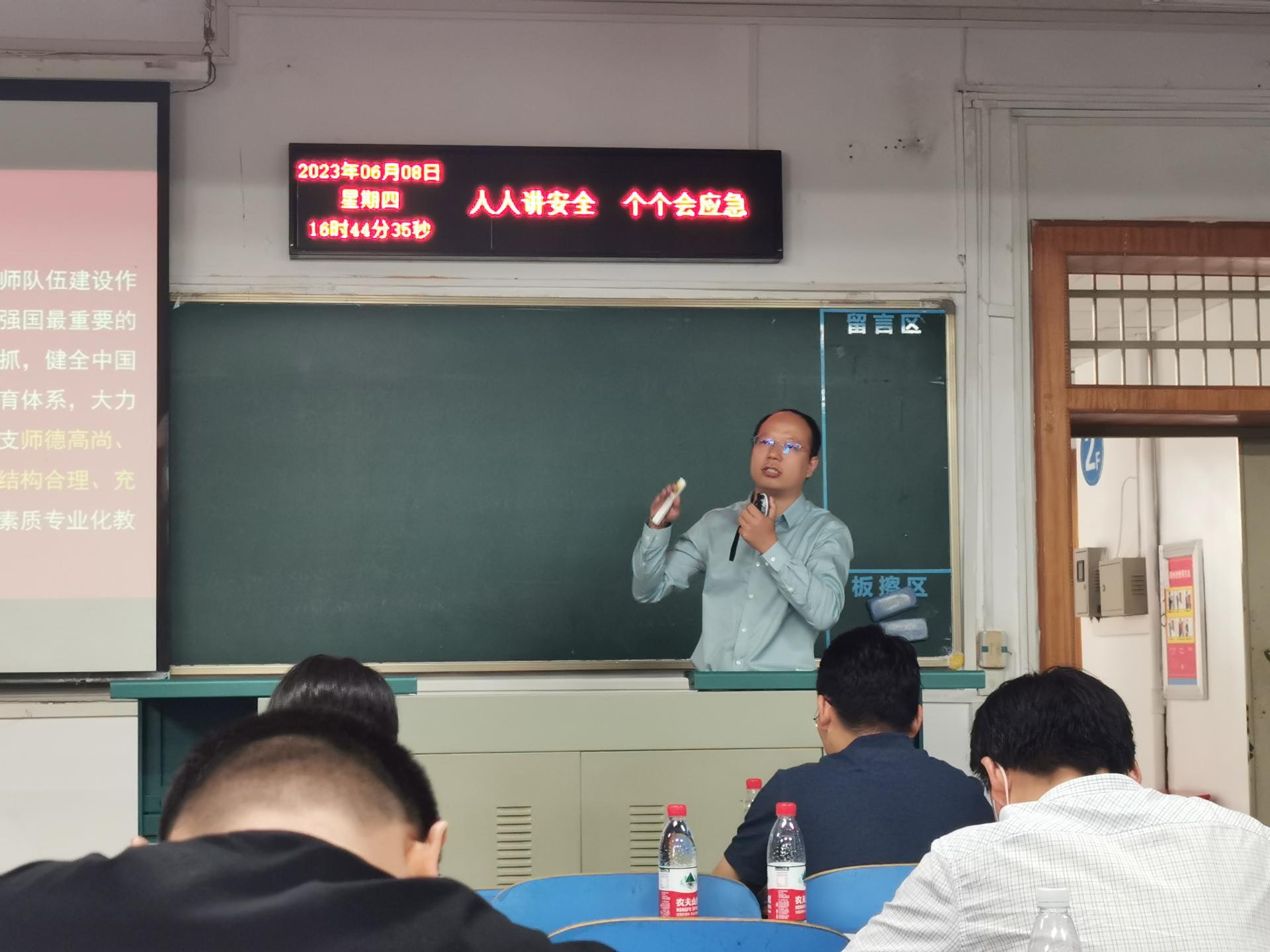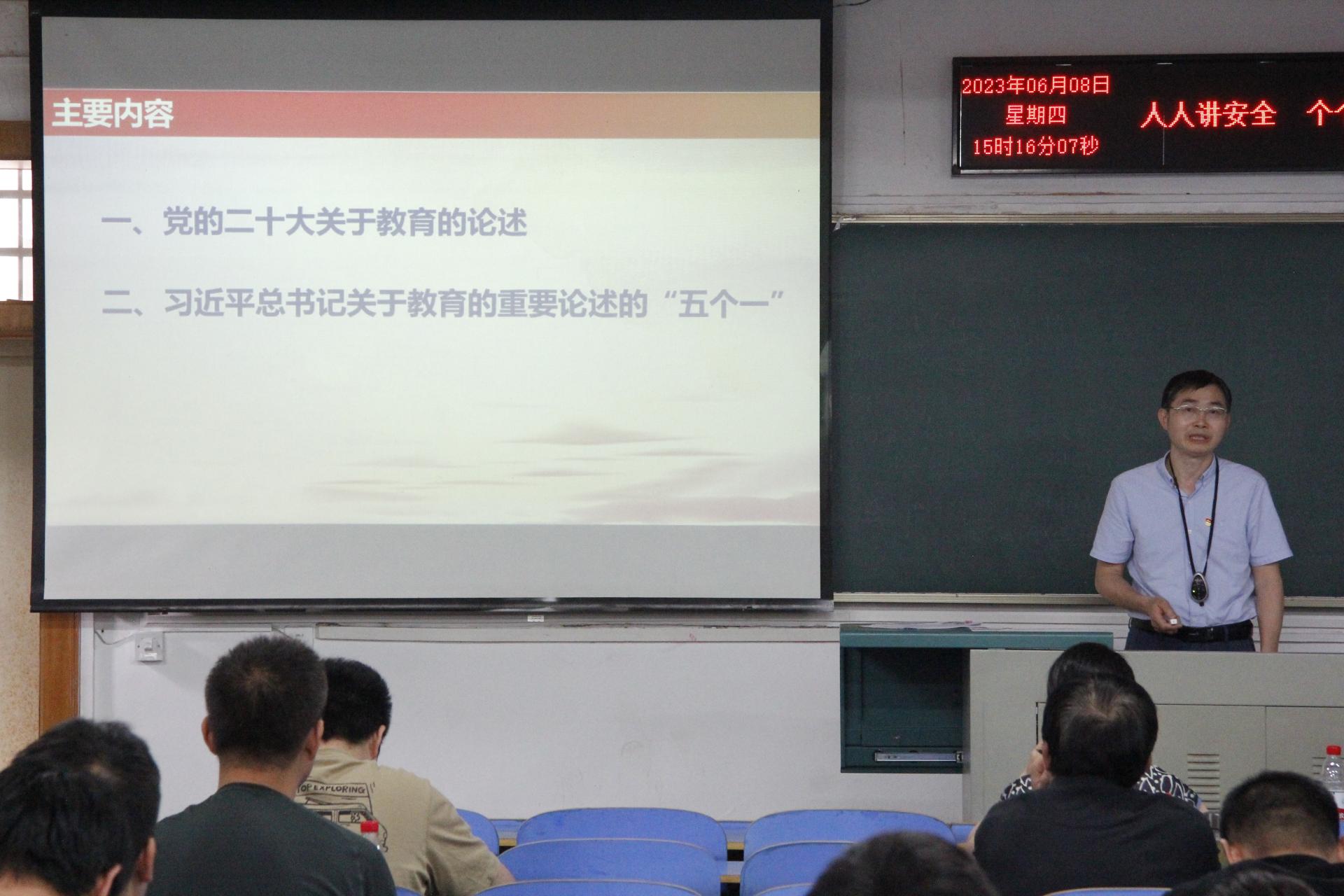 会上,周刚介绍了龙珠直播 党委主题教育工作进展情况、特色亮点、存在不足及下一步工作举措。周刚指出,主题教育是龙珠直播 党委当前和今后一个时期的重要政治任务,要牢牢把握主题教育总要求、根本任务和具体目标,结合龙珠直播 工作实际推动主题教育走深走实。周刚还带领全体党员学习领会了习近平总书记关于教育的重要论述,希望全体教师牢记总书记嘱托,做新时代好教师。