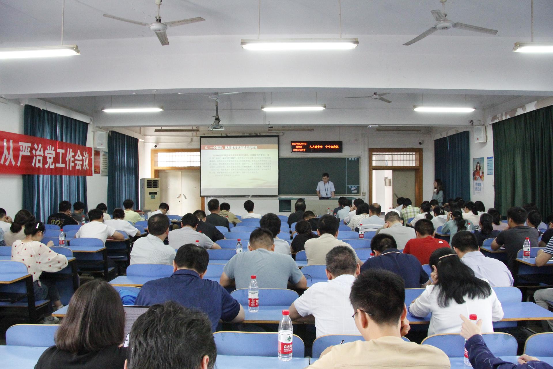 6月8日,龙珠直播 党委召开学习贯彻习近平新时代中国特色社会主义思想主题教育暨全面从严治党工作会,龙珠直播 领导班子成员、全体教师党员和学生党员代表等100余人参加会议,会议由龙珠直播 党委书记周刚主持。