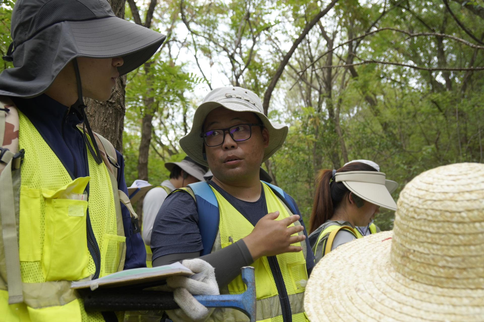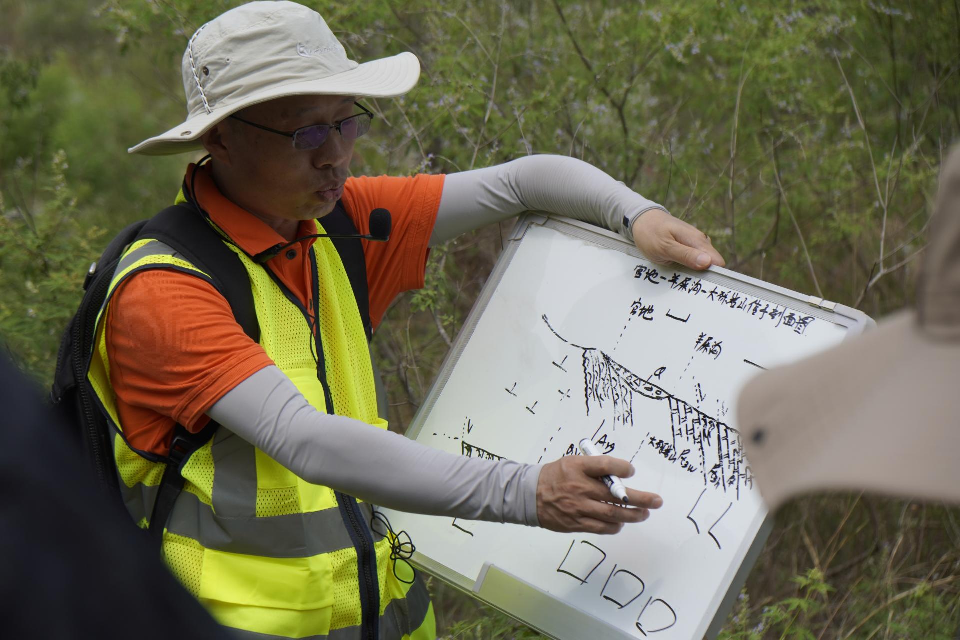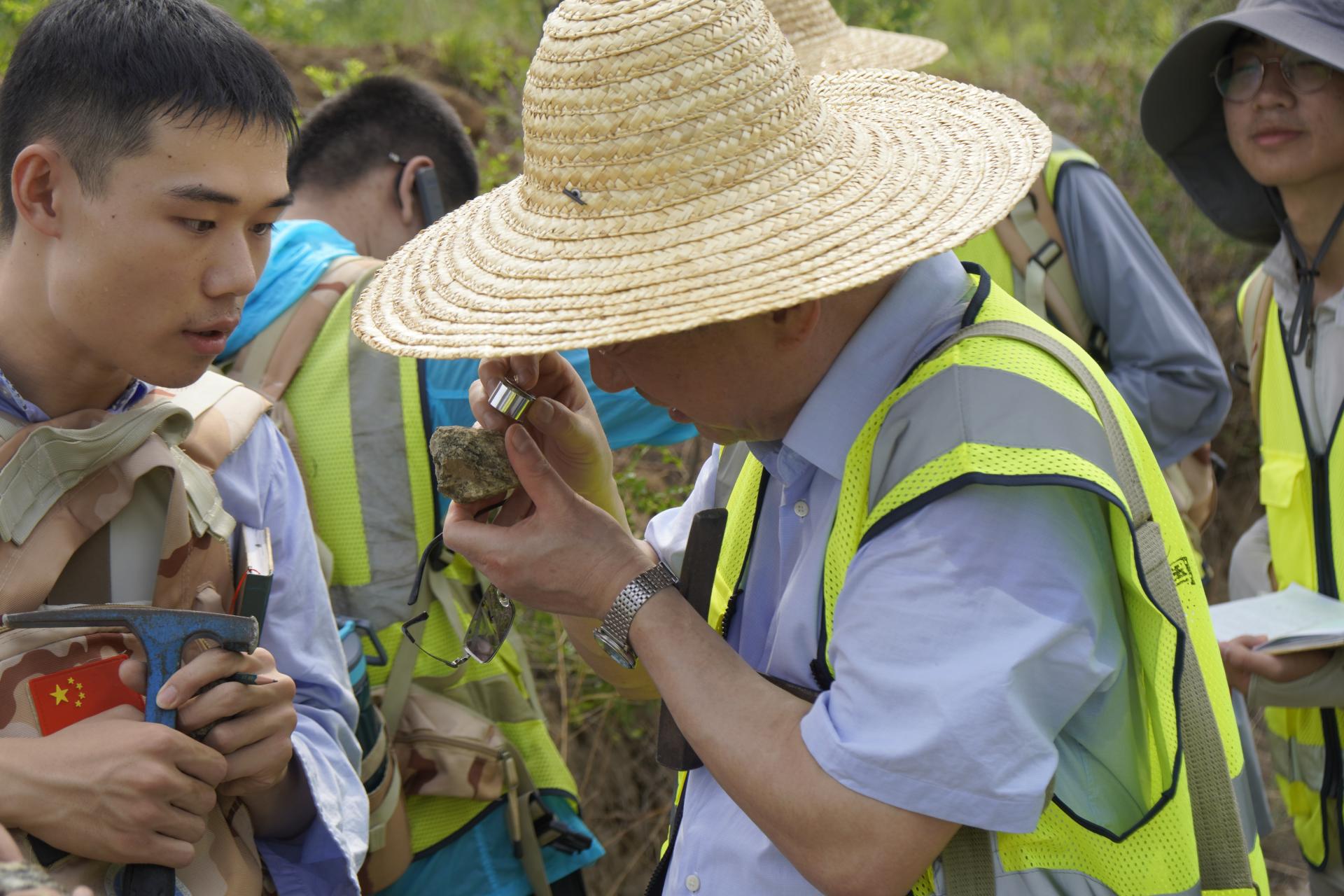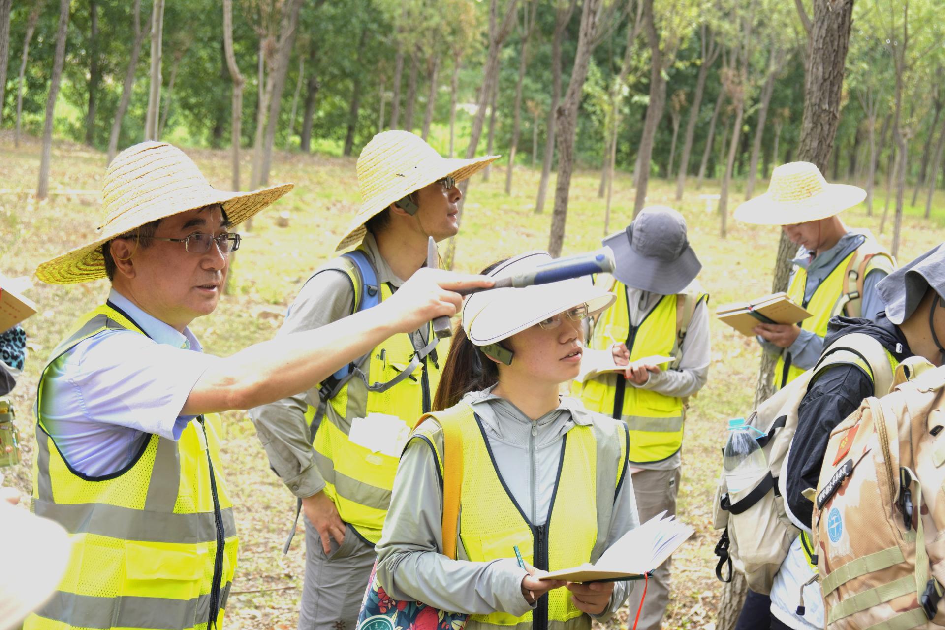 7月11日上午,校长王焰新赴周口店实习基地调研暑假实习工作,看望在站实习师生,与地龙珠直播 010212珠峰班同学一起,参加官地-羊屎沟-三不管沟-大砾岩山北坡实习路线教育教学,并与师生一起探讨交流。副校长刘杰,学校办公室、后勤保障部、校友与社会合作处、本科生院等单位相关负责人参加。