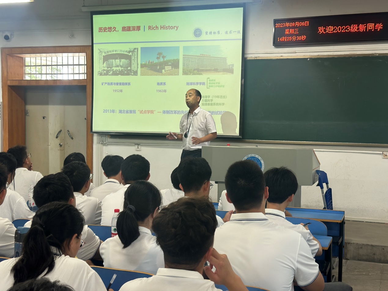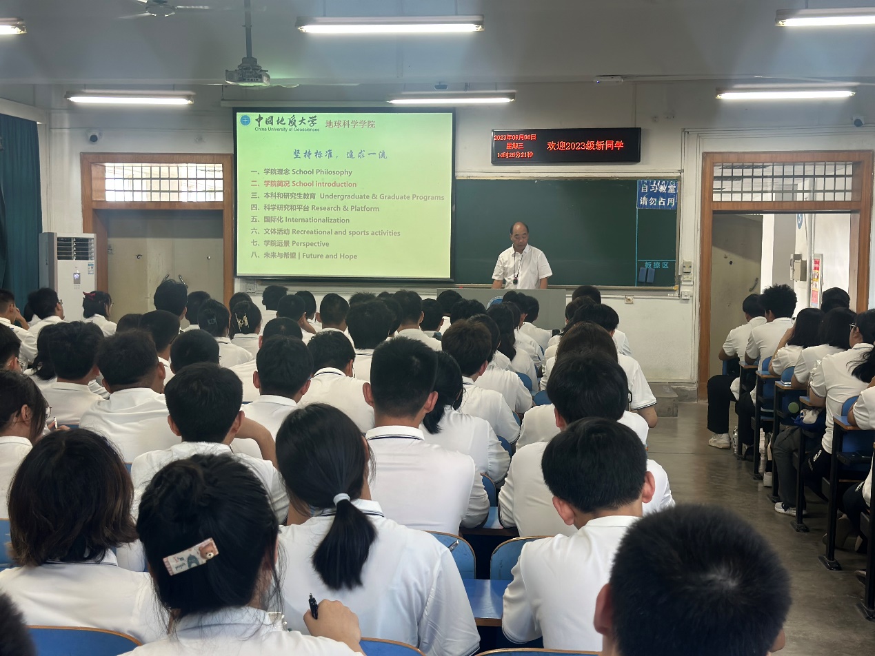 “坚持标准,就是要坚持人才强院、学术标准、国际化办学和有组织地推动发展,追求一流,就是要追求一流教育、一流人才、一流科学研究和一流国际合作。”课堂上,吴元保院长首先对龙珠直播 “坚持标准,追求一流”的理念进行了解读。他回顾了龙珠直播 悠久的建院历史与深厚底蕴,并依次介绍了龙珠直播 各系所和科研平台设置情况,学科发展情况以及教职工和学生组成情况等,充分展现了龙珠直播 丰富的名师资源和突出的平台优势,帮助新生们充分了解龙珠直播 的基本情况。龙珠直播 实力雄厚的科研和教学团队、现代化的教学和科研设备、设施完善的野外实践基地和实验教学示范中心等,都给新生们留下了深刻的印象。