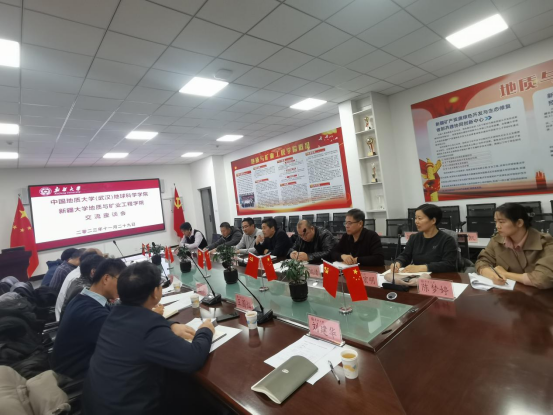 在新疆地矿局第一区域地质调查大队,双方简要介绍了单位情况,并就结合新一轮找矿突破战略行动联合申报科研项目、联合申报科研奖励、合作培养地学人才、浅覆盖区地质填图、人才培养质量反馈与就业等方面进行了深入交流,达成了初步意向。双方签订了党建共建协议,建立长期交流合作机制,打造“党建互联、优势互补、资源共享、共同提高”的党建工作新格局。