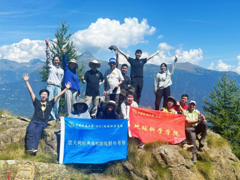 经过三个小时的跋涉,伴着山间清澈的泉水和随风而来迎面的云雾,师生成功登顶,沿途过程中,不仅观察到了非常珍贵的地质现象,而且欣赏了令人难忘的阿尔卑斯山脉美景。“这里主要以榴辉岩相云母片岩为主,保留了非常好的阿尔卑斯进变质作用记录。”章军锋教授在穆克罗内山(Monte Mucrone)山顶为同学们讲解进变质作用及其在该区的代表性矿物组合。该条路线,师生考察了全球经典的下地壳-上地幔顶部剖面、欧洲板块与亚德里亚(Adria)微陆块的交界剖面、深部地幔折返的残片以及欧洲板块前缘地壳俯冲导致的进变质作用现象等,极大拓宽了地质视野和认知。