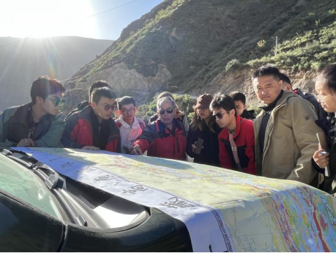 在左贡盆地,当潘桂棠老师再一次拿出青藏高原1:25万填图时,宗克清教授向学生们介绍道:“潘老师担任填图项目总负责人时,已经60岁了,填图期间内出血10天,没去医院,而且170多幅填图中,潘老师亲自跑了110多幅图!”潘老师则笑着回道:“对于高原我们还有很多事情没有做完,很多深化的工作要靠你们去做,你们还早的很,任重道远。”学生们无一不被潘老师对地质的热爱之情所撼动,老一辈地质人对青藏高原的情怀也不断激励着新一辈地质人奋战高原、勇攀高峰。