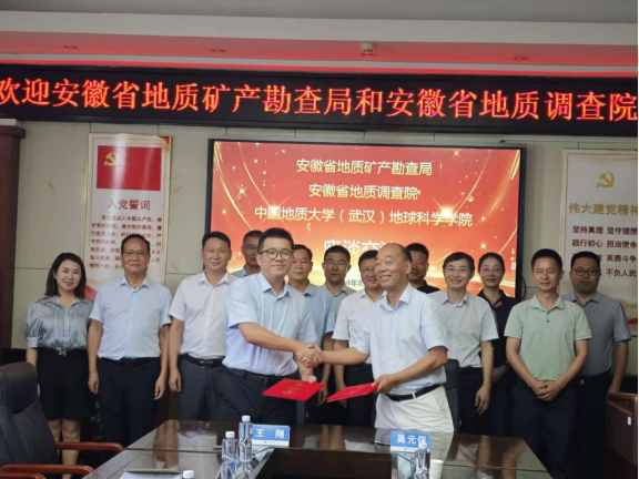8月12日,安徽省地质矿产勘查局叶朝晖副局长、安徽省地质调查院王翔院长带队来龙珠直播 座谈交流,龙珠直播 蒋少涌校长助理、龙珠直播 周刚书记、吴元保院长、朱宗敏副院长以及校科学发展院肖平副院长等参加座谈会。会上双方围绕进一步深化务实合作、推动协同创新、构建产学研联盟体系等展开交流讨论,并签署了产学研合作协议。