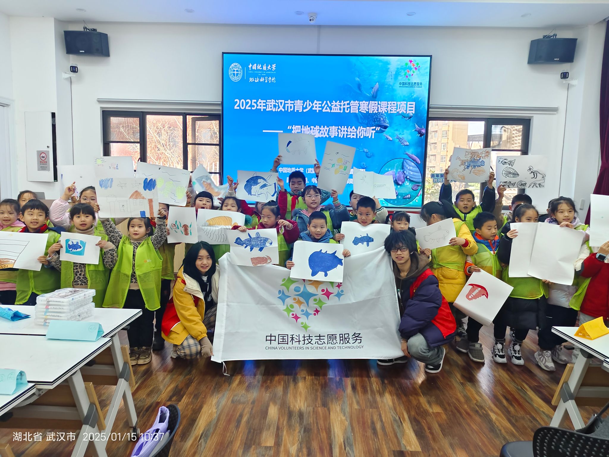 “爱心托管班”是湖北省的“十大民生项目”之一,旨在服务留守儿童、经济困难家庭儿童以及“双职工”子女,提供公益性寒假看护,为各地群众有效解决假期“看护难”问题。2025年寒假期间,在武汉市团市委发起的“青少年寒假爱心托管班项目”中,龙珠直播 “地学之光”科普讲解队承担的“把地球故事讲给你听”爱心托管项目顺利入选首批10个I类课程,于1月14日-21日期间,深入武汉市190个社区托管班开展科普志愿活动,为6000余名青少年带来了一场知识与趣味并存的科学盛宴,为他们插上了地球科学的翅膀,获得了青少年及家长们的高度认可和一致好评。
