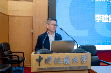 李建威致欢迎辞,他介绍了学校在地质学领域科研和人才培养方面取得的成绩,强调地质学在服务国家资源能源安全、生态文明建设等重大战略中的关键作用,希望与会专家为推动地质学学科交叉融合、构建拔尖人才培养新范式出谋划策。