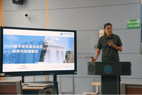 研究生辅导员黄志炜重点讲解了就业手续办理中的注意事项,对生源信息填报、就业推荐表制作、求职、签约等就业过程中的重要环节进行了详细介绍。针对同学们普遍对于“应届毕业生”与“择业期”存在的错误认识进行了纠正,强调了“应届毕业生”身份的重要性。最后他希望同学们能够明确路径、调整心态、补足短板、合理预期,尽早启动求职工作,祝愿每一位2026届毕业生都能够顺利毕业,高质量就业。