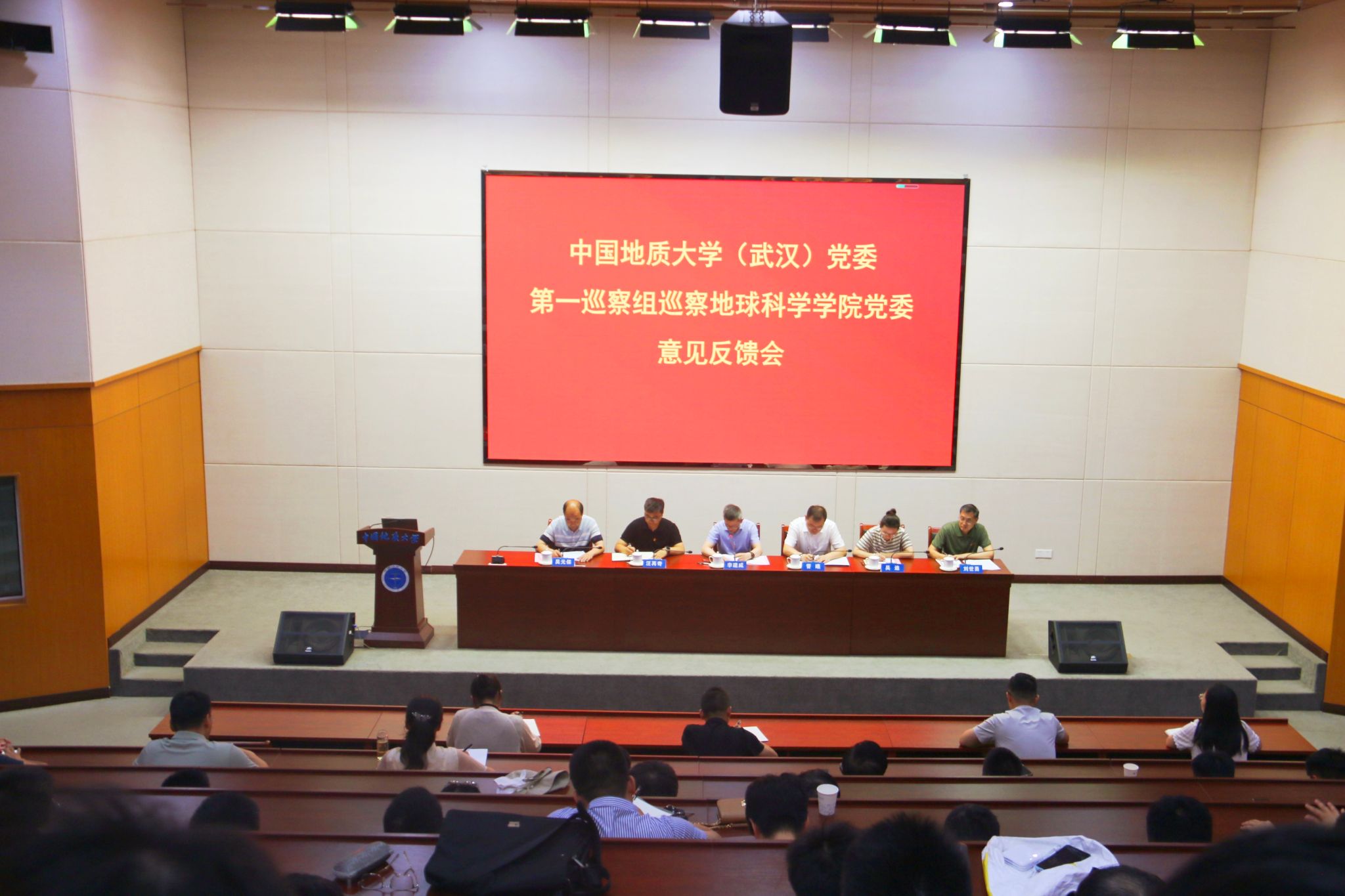 校党委副书记、校长李建威同志,党委巡察办主任晋曦同志,巡察组组长资源龙珠直播 党委书记汪再奇同志,副组长机电龙珠直播 党委副书记吴迪同志,巡察组成员张健同志、高思宇同志、陈文婷同志、高为同志,龙珠直播 领导班子全体成员参加反馈会议,龙珠直播 全体教职工、民主党派人士和学生代表等列席会议。