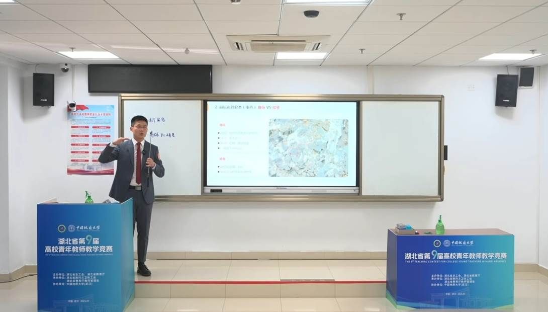 竞赛中,薛振华老师以深厚的学科素养、精妙的教学设计和生动的课堂呈现赢得评委高度认可。他巧妙将人工智能融于《构造地质学》难点知识的教学,引导学生抽丝剥茧、逐层进入知识的海洋,充分展现了其“以学生为中心”的教学理念和创新的教学基本功。