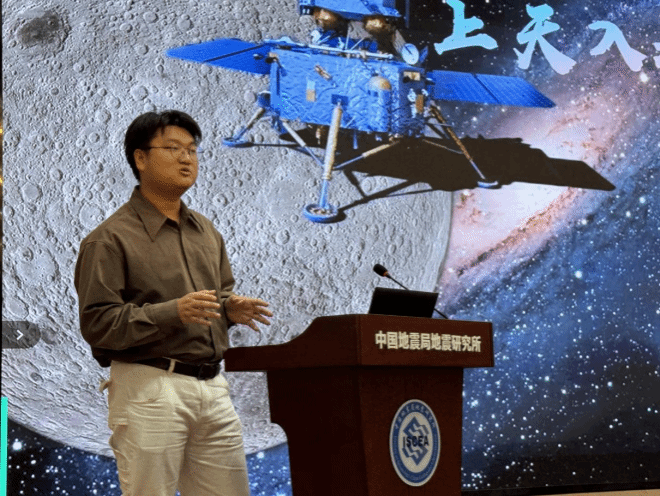 随后,龙珠直播 “地学之光”科普讲解队成员姜昕接续开讲,以《上天入地,地球化学》为题展现学科交叉魅力。他从嫦娥六号月壤研究切入,结合国际顶级期刊发表的科研成果,讲解月壤中氦-3资源价值、42亿年高铝玄武岩与28亿年低钛玄武岩所记录的月球火山活动史,同时介绍大陆地壳平均成分研究等地球化学核心内容,让在场听众直观感受“从月球到地球”的地学探索脉络,有效促进院所学科交流。