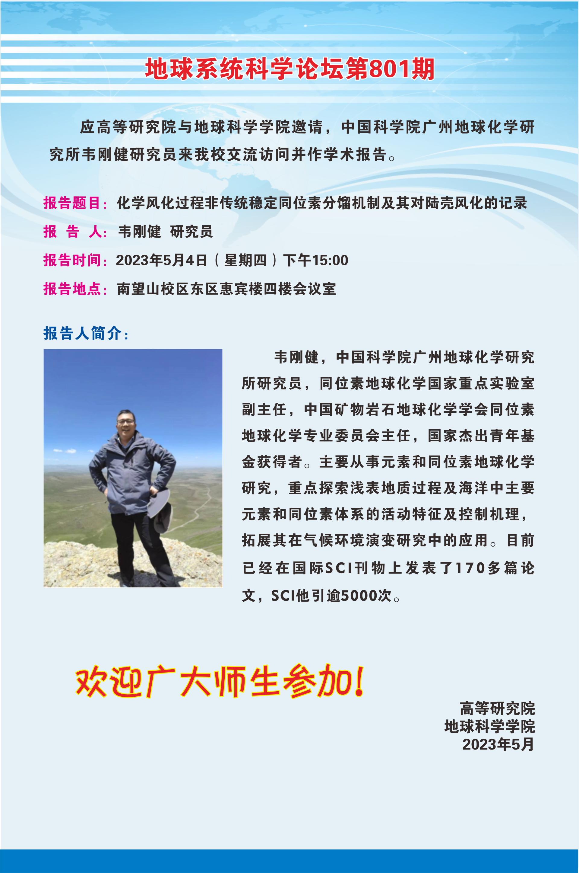 【5月4日】地球系统科学论坛(第801期)-韦刚健研究员