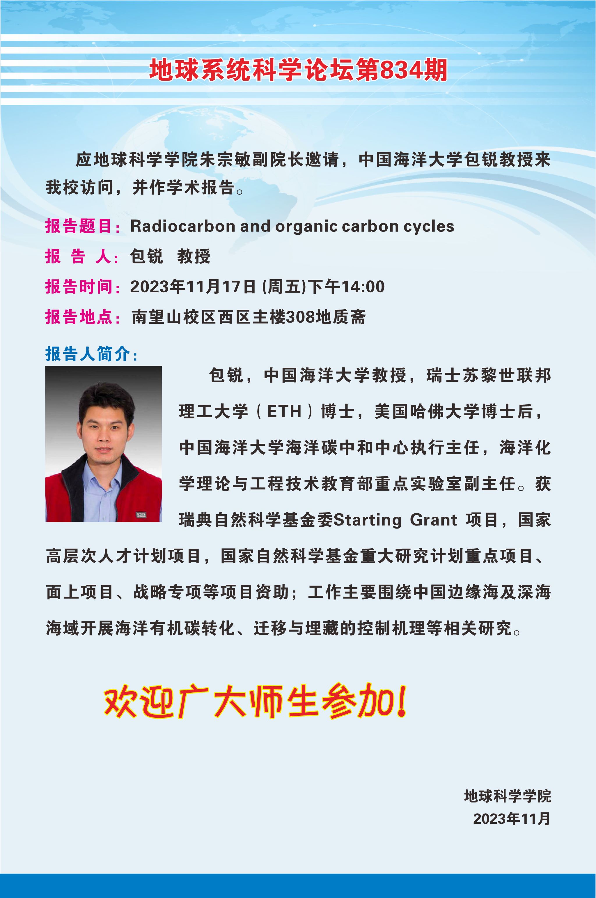【11月17日】地球系统科学论坛(第834期)-包锐教授
