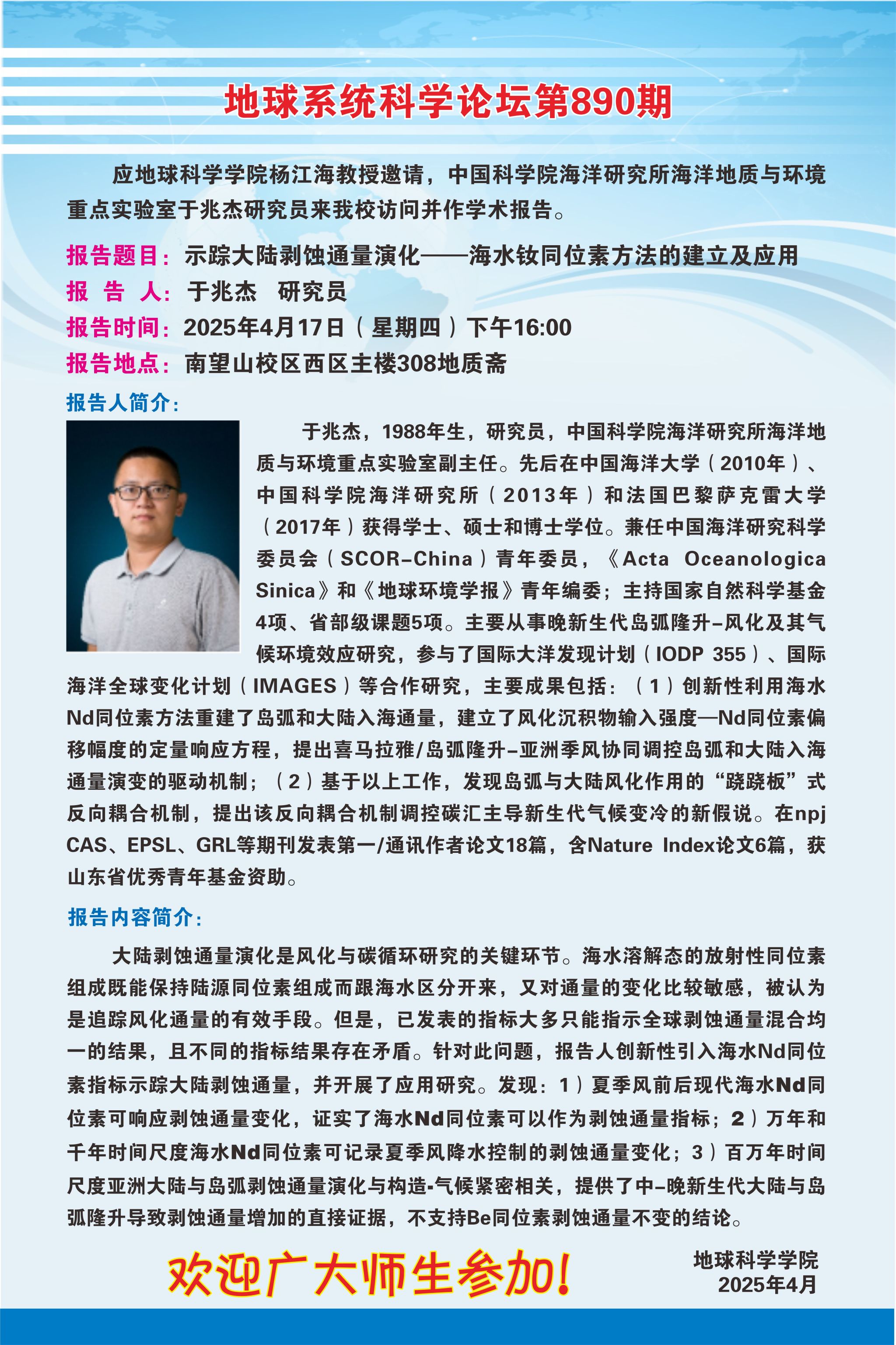 【4月17日】地球系统科学论坛第890期-于兆杰研究员