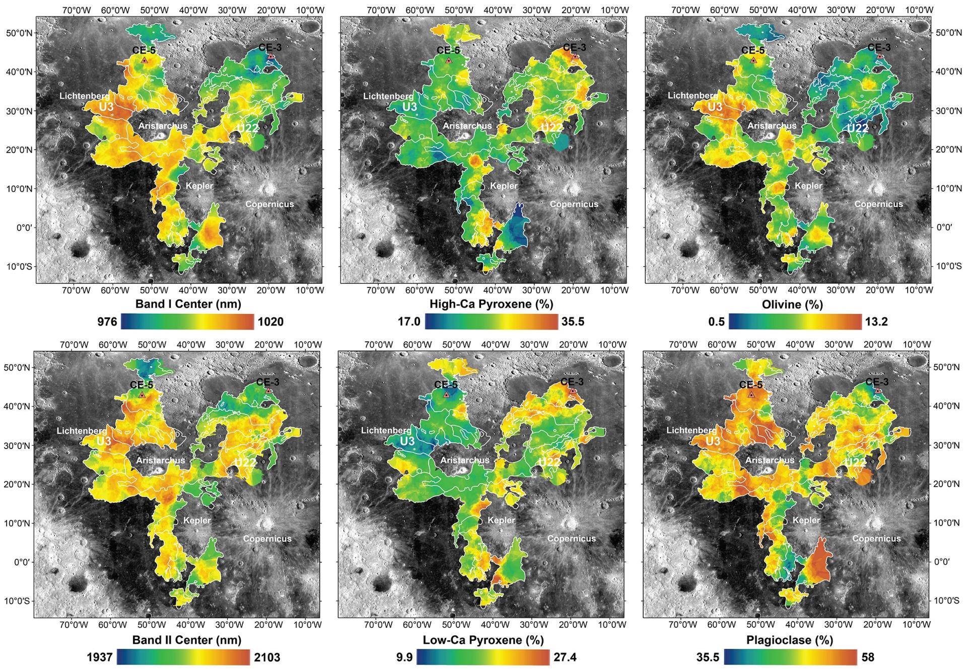 图2. 月球年轻月海玄武岩光谱吸收及矿物组成特征
