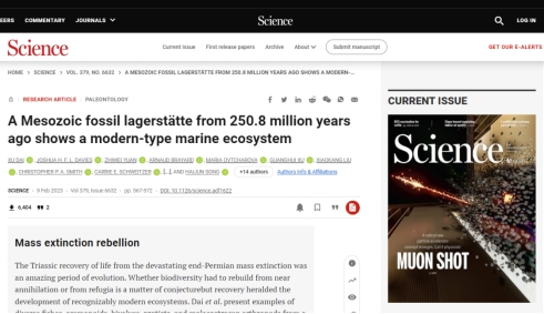 传承“金钉子”精神,也是支部最鲜明的特色。2018级博士研究生、前支部党员代旭历时8年深耕贵州、云南、西藏等西部10省,采集了上万块化石,最终让“贵阳生物群”现世,并以第一作者在《科学》杂志上发表论文。去年下半年,代旭回到龙珠直播 ,成为一名教师。身份转换后,他决心继续发扬“金钉子”精神,引领学生全面发展。