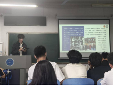 接着,来自第一团小组的黄欧盟同学以“弘扬世运精神,展现青春风采”为主题,介绍了2025年成都世运会的情况,其开幕式以无界舞台融合城市与赛事,中国体育代表团创参赛规模新高并斩获优异战绩;同时也展示了赛事中的科技赋能与绿色低碳办赛理念,分享了世运会小青椒志愿者的服务故事,解读志愿服务精神,让大家感受到了世运会上的青春活力与担当。