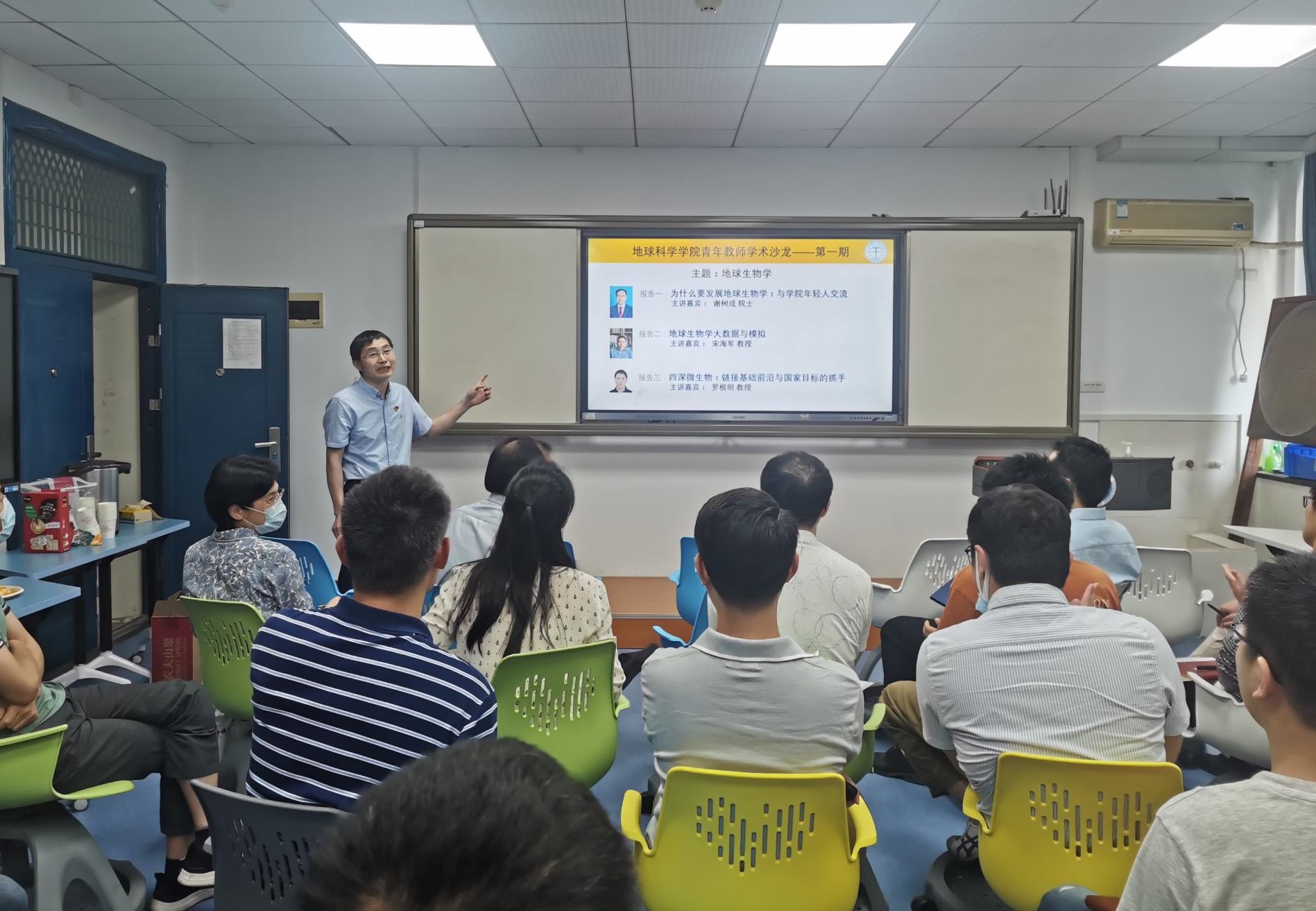 5月5日下午,首期龙珠直播 青年教师学术沙龙活动在主楼606智慧教室举行,腾讯会议实时线上直播。学术沙龙旨在分享龙珠直播 青年教师的学术成果,加强学术交流合作,促进学科交叉融合。现场出席活动的有校党委书记黄晓玫教授、谢树成院士、地龙珠直播 党委书记周刚及龙珠直播 青年教师,生环国重、地矿国重青年教师在线参会,本次活动共吸引100余位教师参与。第一期沙龙主题为地球生物学,邀请了谢树成院士、宋海军教授和罗根明教授分享报告,王墩教授主持会议。