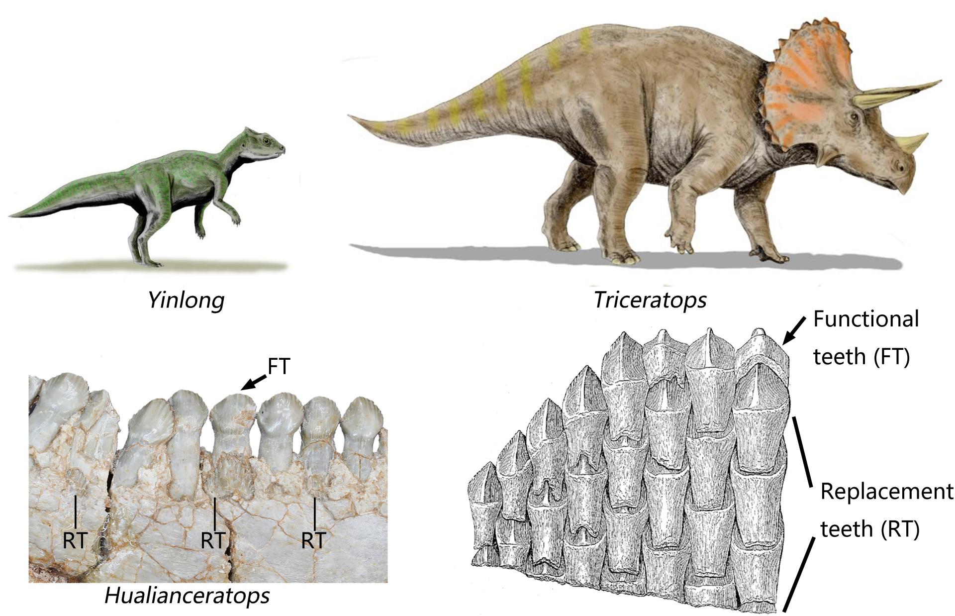 Recently, Fenglu Han from China University of Geosciences(Wuhan) united other researchers to deeply study the dental morphology and tooth replacement traits of early-diverging ceratopsians. The research reveals the tooth replacement pattern of early-diverging ceratopsians and provides new insights for studying their feeding strategy. The paper has been published in eLife online (//doi.org/10.7554/eLife.76676).